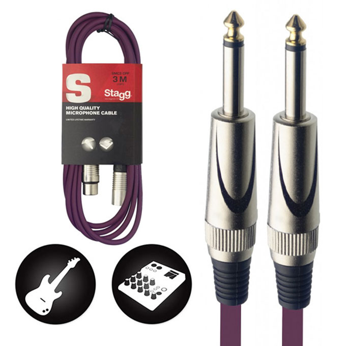 Cabo para instrumentos; conectores P10 (reto) x P10 (reto); revestimento emborrachado; cor Purple; comprimento 3 metros.