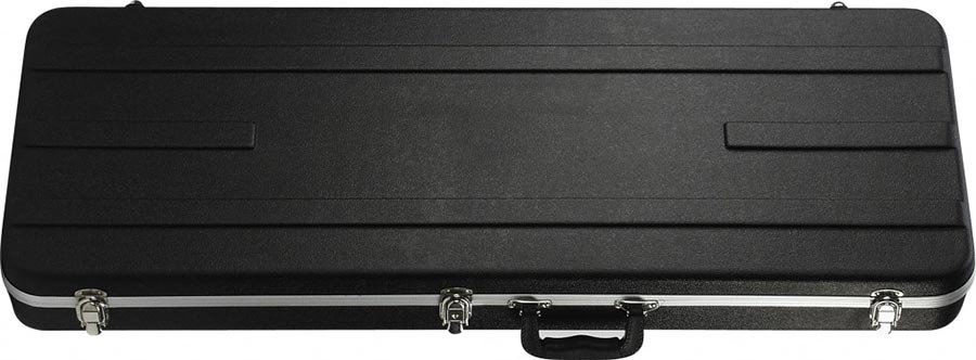 Case rígido para guitarra; contruído em ABS; bordas com reforço em alumínio; interior com espuma de alta densidade e forração em pelúcia (preta) extra macia; alça refoçada.
